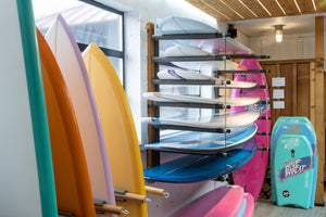 Pop by to book a lesson, chat with our friendly staff, and browse our fully stocked retail store. We proudly carry a wide selection of clothing, accessories, wetsuits, surfboards, and surf gear.